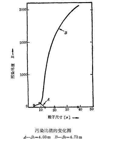 該過濾管在1.2和1.9m壓頭差下下操作獲得凈化產(chǎn)品,其污染程度低于1ppm。在壓頭差為4.0米0米時則污染程度約可達3PPmo污染系數(shù)的定義是污染的油與凈化的油中計數(shù)粒子的比值不同壓力下,粒子大小與污染比值的關系見圖,曲線中污染比值和粒子分布系指凈化油被水所污染。