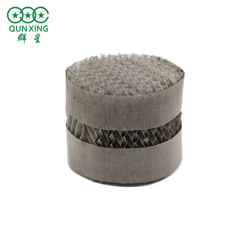我國(guó)1977年研制成功了具有壓延刺孔板的波紋填料。它與金屬絲網(wǎng)波紋填料的差別在于用金屬板片代替金屬網(wǎng)。金屬板經(jīng)碾壓出密度很高的小刺孔,然后把多刺孔板壓制成波紋板片。它與金屬板波紋填料的區(qū)別主要是沒(méi)有在金屬板片上沖制小孔。其成盤(pán)、裝塔要求等均與網(wǎng)波紋、孔板波紋填料相同。發(fā)展至今,以4.5 型和6.3型兩種為主。產(chǎn)品已應(yīng)用于煉油、醫(yī)藥等工業(yè)中,取得滿意效果,是我國(guó)開(kāi)發(fā)研制的規(guī)整填料之一。